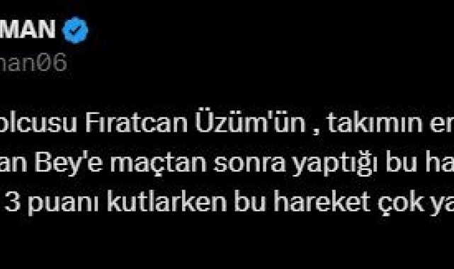 Gençlerbirliği oyuncusu Fıratcan Üzüm, 2-1 kazanılan Ümraniyespor maçının ardından Gençlerbirliği Basın Sorumlusu Erhan Doğan'a saygısız davranışlarda bulundu.
