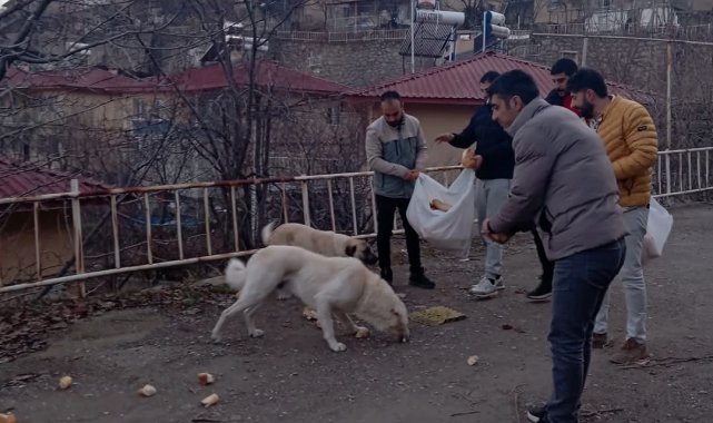Tunceli'nin Çemişgezek ilçesinde gençler, kış aylarında yiyecek bulmakta zorlanan sokak hayvanlarını için çalışma yaptı.
