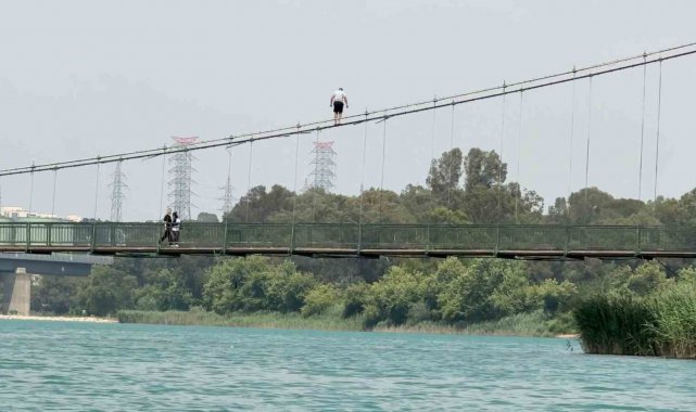 Yurt genelinde olduğu gibi Adana'da da her geçen gün sıcak hava ve nem etkisini arttırıyor. Sıcaklıkların 40 derecelere yaklaştığı bugünler de, gençler ise tehlikeye rağmen Seyhan Nehri'ne giriyor. Seyhan ilçesinde bulunan Gençlik Köprüsü'nün halatlarına tırmanan gençlerin tehlikeli hareketleri ise dikkat çekiyor. Tehlikeye aldırış etmeyen gençler, bir süre köprü halatlarında asılı kaldıktan sonra kendilerini nehrin serin sularına bırakıyor.