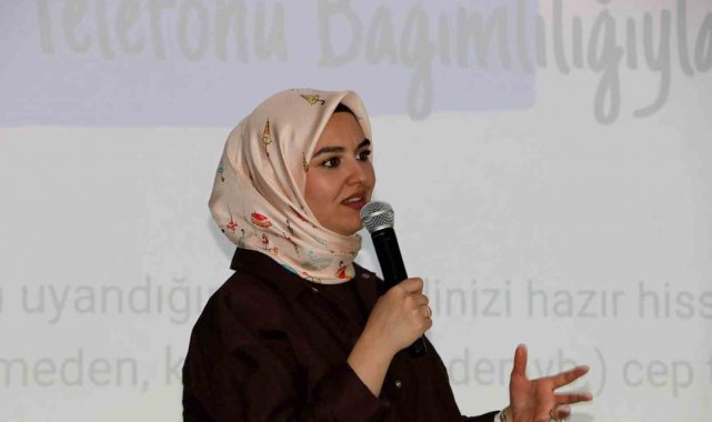 Lise öğrencilerinin yoğun katılım sağladığı söyleşide konuşan aile danışmanı Şevval Kaya Yılmaz, "Teknoloji hayatımızın vazgeçilmez bir parçası haline geldi. Ancak gençler arasında kontrolsüz kullanım dijital bağımlılığa yol açabiliyor. Bu durum ders başarısını, sağlığı ve sosyal ilişkileri olumsuz etkileyebilir. Ekran süresini sınırlamak, sosyal etkinliklere katılmak ve dijital detoks yapmak sağlıklı teknoloji kullanımı için önemlidir. Unutmayın, teknoloji bir araçtır, merkez haline geldiğinde zarar verebilir" diye konuştu.