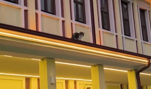 Eskişehir'de çatıda bağıran kedinin kendisini kurtarmak için seferber olan gençlerle adeta oyun oynadığı ilginç anlar kameraya yansıdı.