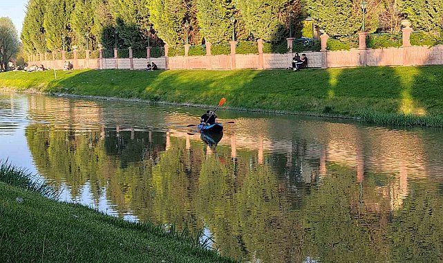 Eskişehir'in yeşiliyle bilinen duraklarından biri olan Kanlıkavak Parkı'nda bir araya gelen gençler, Porsuk Çayı üzerinde kano yaparak güzel havanın tadını çıkardı.
