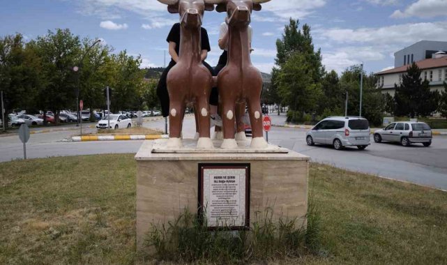 Sivas'ta üniversiteden mezun olan iki arkadaş, kampüs girişinde bulunan 'Hurri ve Şerri' heykeline çıktı. Sarissa Antik Kenti kazısında bulunan ve benzeri yapılarak Cumhuriyet Üniversitesi girişinde sergilenen heykele çıkan kızlar, şehri daha yüksekten görmek istediklerini söyledi.