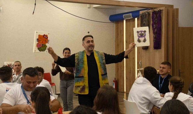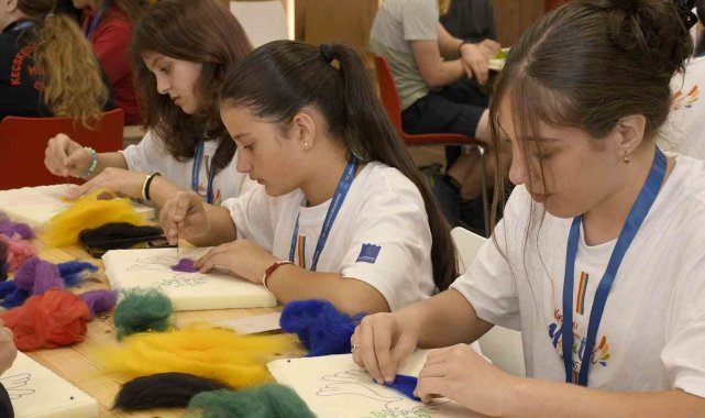 Kuşadası Belediyesi'nin ev sahipliğinde başlayan gençlik toplantısı 2'inci gününde keçe atölyesi ile devam etti. Öğrenciler atölyede birbirinden renkli çalışmalar yaparak eğlendi.