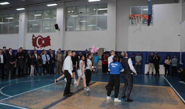 Gençlik ve Spor Bakanı Osman Aşkın Bak, bir dizi incelemelerde bulunmak üzere geldiği Şırnak'ta, genç sporcularla bir araya gelip basketbol oynadı.