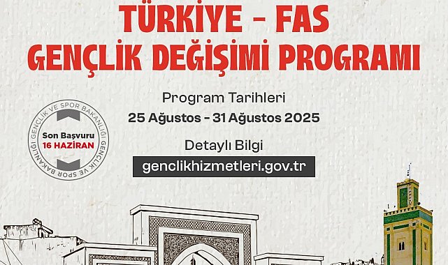 Gençlik ve Spor Bakanlığı'nın sosyal medya hesabından yapılan paylaşımda 'Türkiye - Fas Gençlik Değişimi Programı' başvurularının başladığı duyuruldu. Bakanlığın paylaşımında, "25-31 Ağustos tarihleri arasında, yeni kültürler tanımak ve uluslararası bir deneyime adım atmak isteyen 18-25 yaş aralığındaki tüm gençlerimize heyecan verici bir imkan sunuyoruz. Son başvuru tarihi: 16 Haziran Pazartesi" ifadelerine yer verildi.