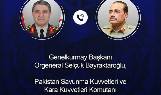 Genelkurmay Başkanı Orgeneral Selçuk Bayraktaroğlu, Pakistan Savunma Kuvvetleri ve Kara Kuvvetleri Komutanı Mareşal Syed Asim Munir ile telefonla görüştü.