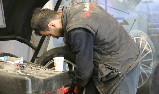 Sivas'ta Ata Sanayi Sitesi'nde hizmet veren bir lastikçi dükkanı işlerini aksatmamak ve müşterilerini mağdur etmemek için bu özel günde de çalıştı. Sabahın erken saatlerinde kepenk açan esnaf, otomobil lastikleri değiştirerek, evlerine ekmek götürme derdine düştü.