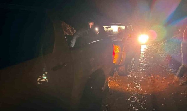 Gercüş'te çamura saplanan aracı Özel İdare ekipleri kurtardı