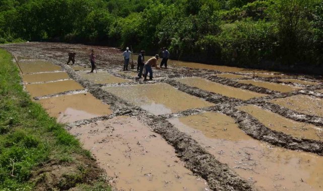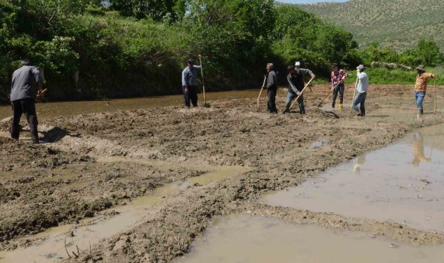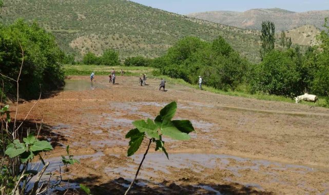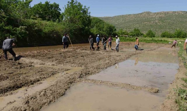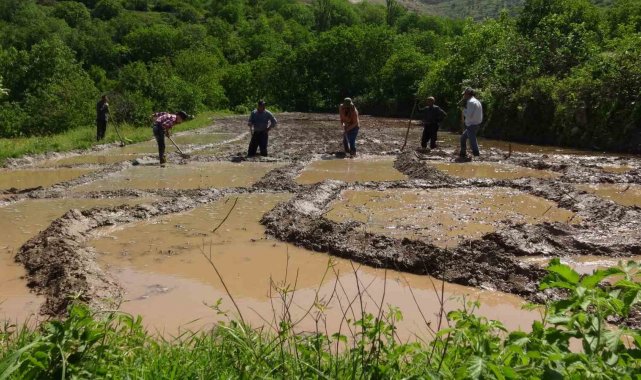 Gercüş'te dededen kalma yöntemlerle imece usulü pirinç ekimi