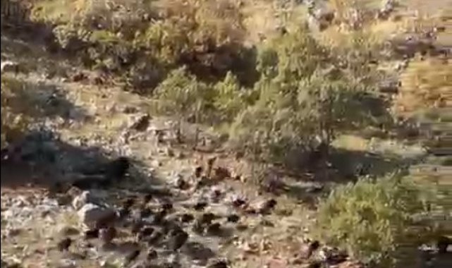 Gercüş'e bağlı Gökçepınar köyünde ikamet eden Ferhat Demirtaş palamut toplamaya giderken domuz sürüsüne denk geldi. Demirtaş domuz sürüsünü cep telefonuyla kaydetti.