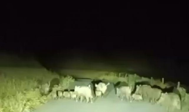 Hisar köyünde ise akşam saatlerinde seyir halindeki bir aracın önüne çıkan domuz sürüsü, karşıya geçmekte zorlandı. Aracın gelmesiyle bir süre bekleyen domuzlar, daha sonra ormanlık alana doğru ilerleyerek gözden kayboldu. O anlar, bir vatandaşın cep telefonu kamerasıyla kaydedildi.