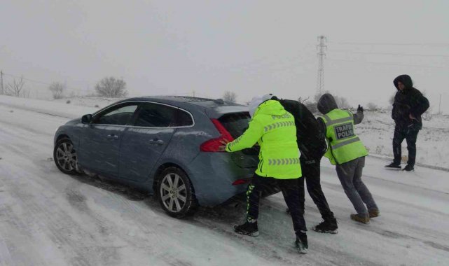 Batman'ın Gercüş ilçesinde yoğun kar yağışı ve buzlanma nedeniyle yolda kalan vatandaşların yardımına polis ekipleri koştu. Bazı noktalarda trafiği yöneten ekipler, bazı noktalarda ise bizzat araçları iterek sürücülere nefes aldırdı.