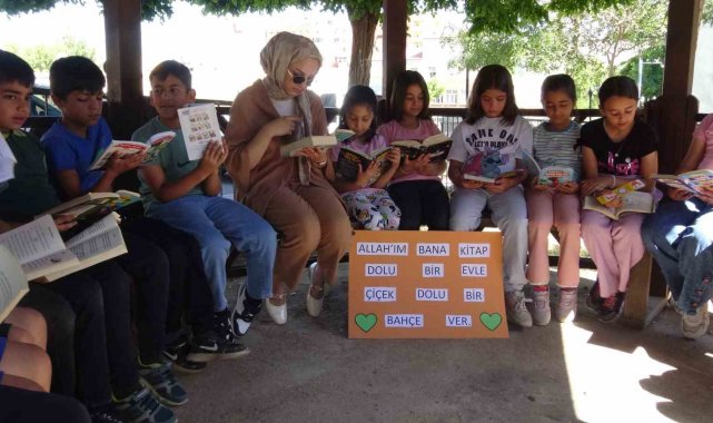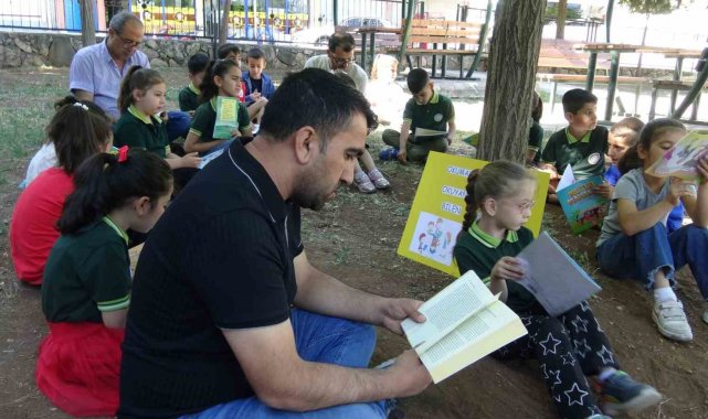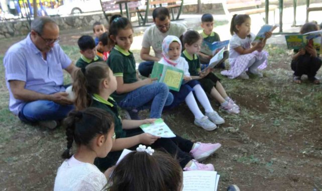 Batman'ın Gercüş ilçesinde Atatürk İlkokulu öğrencilerine, anne-babaların ve öğretmenlerin katılımıyla parkta kitap okuma etkinliği düzenlendi.