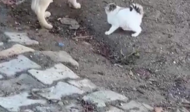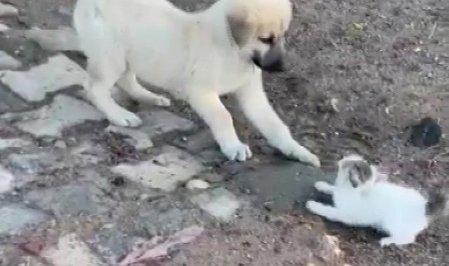 Batman'ın Gercüş ilçesinde yavru kedi ile yavru köpeğin sevimli kavgaları cep telefonu kamerasına yansıdı.