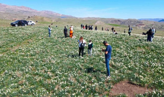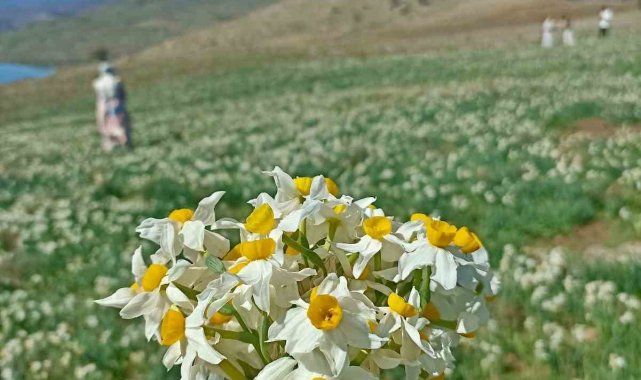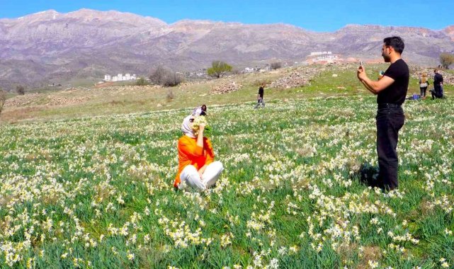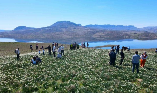 Adıyaman'ın Gerger ilçesinde Atatürk Barajı kenarında bulunan 50 dönümlük doğal nergis bahçeleri, ziyaretçilerin ilgi odağı oluyor.
