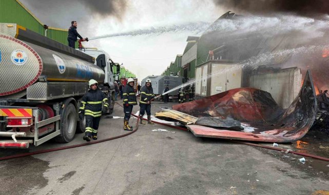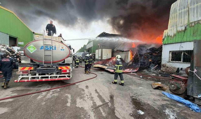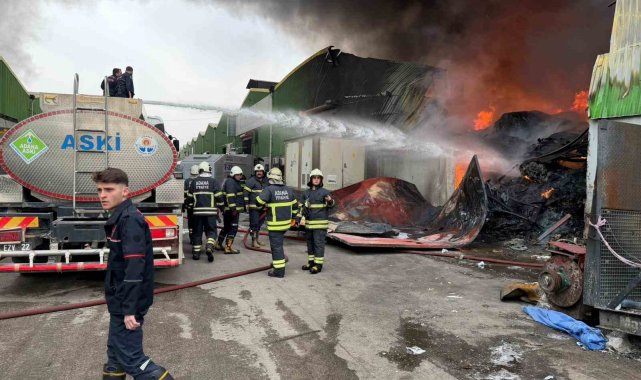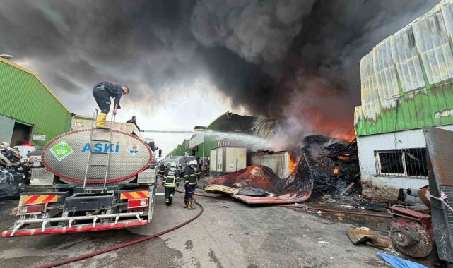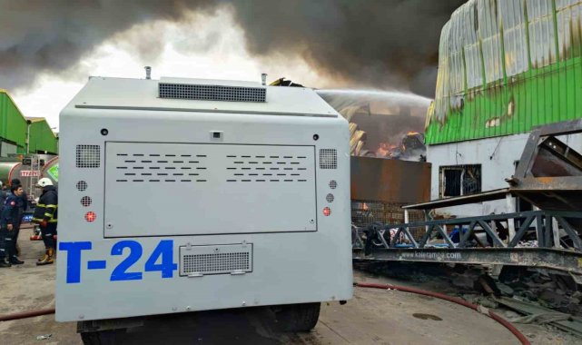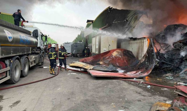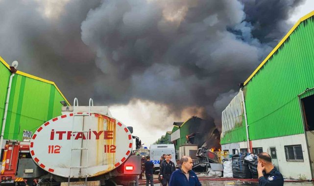 Geri dönüşüm fabrikasında çıkan yangına ekiplerin müdahalesi sürüyor