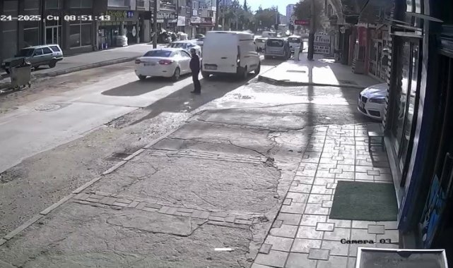 Bursa'nın Nilüfer ilçesinde, aracını park halinden çıkarmaya çalışan sürücü, cadde üzerinde duran adama çarptı. Ne olduğunu anlayamayan adam savrulurken, sürücü son anda frene bastı. O anlar güvenlik kamerasına saniye saniye yansıdı.