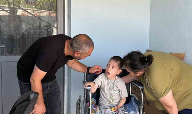 Germencik Belediyesi minik Mustafa'nın tekerlekli sandalyesini teslim etti