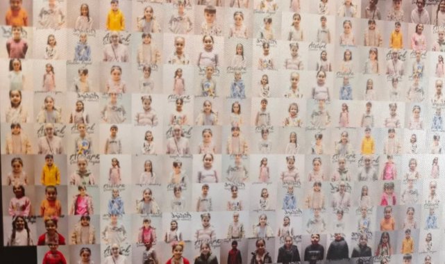 Aydın'ın Germencik ilçesinde 23 Nisan kapsamında 500'ü aşkın çocuğun 3 bin 600 fotoğraf karesi bir araya getirilerek Atatürk portresi oluşturuldu.