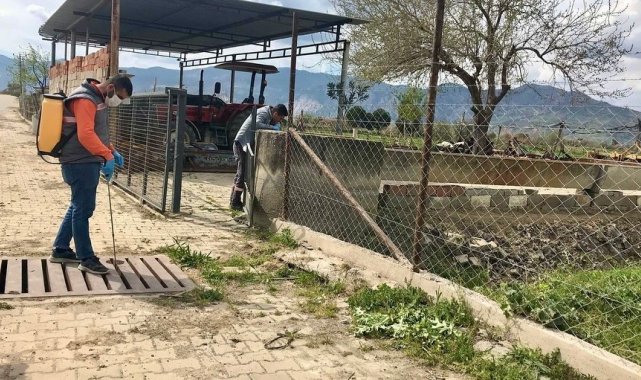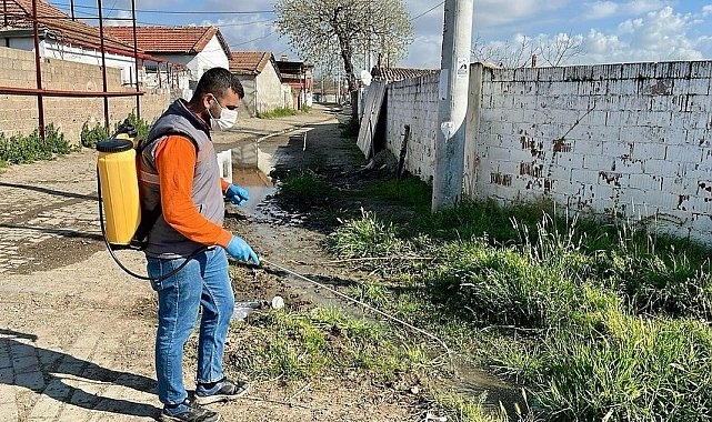 Aydın'ın Germencik ilçesinde sivrisinek ve yabani ot mücadelesi kapsamında belediye ekiplerince ilaçlamalar aralıksız sürüyor.