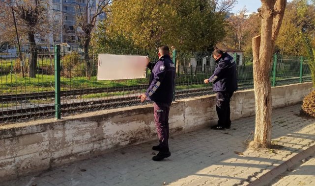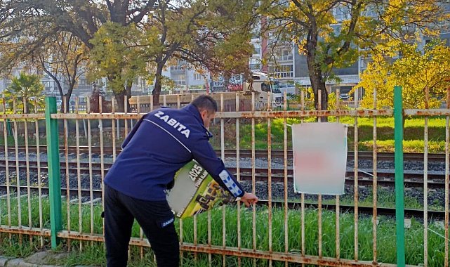 Germencik'te izinsiz afişlere zabıta müdahalesi