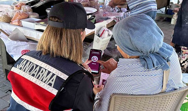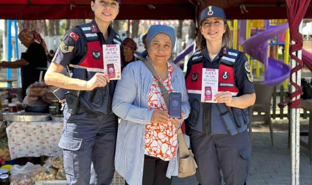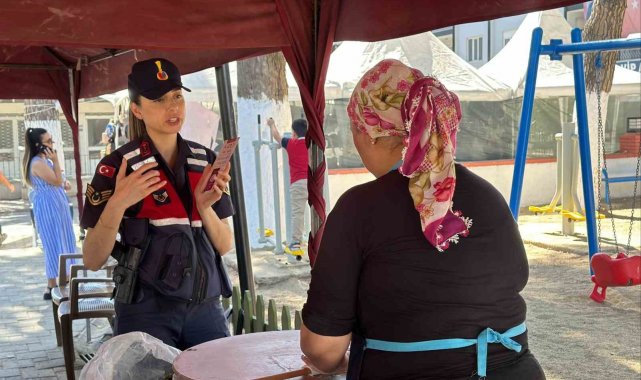 Aydın'ın Germencik ilçesinde başlayan İncir Festivali'nde stant açan jandarma ekipleri, kadına karşı şiddete dikkat çekerek, KADES uygulamasını tanıttı.