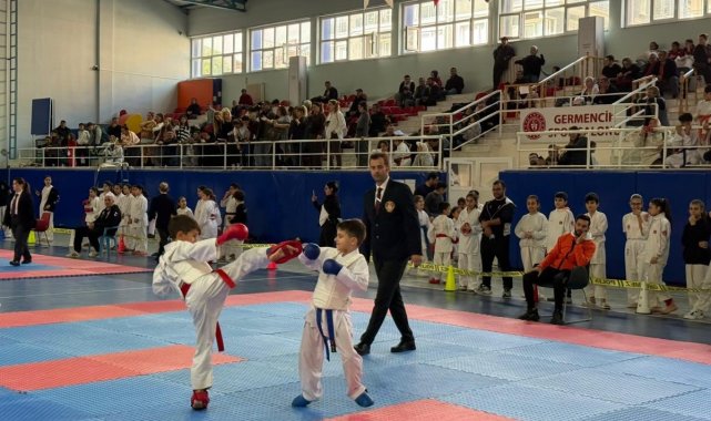 Aydın'ın Germencik ilçesinde düzenlenen karate şampiyonasında tatamiye çıkan minikler şampiyonluk için ter döktü.