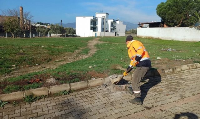 Aydın'ın Germencik ilçesinde belediye temizlik ekiplerinin çalışmaları sürüyor.