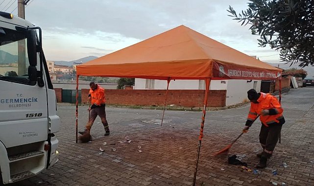 Germencik Belediyesi Temizlik İşleri Müdürlüğü ekipleri ilçe genelinde rutin çalışmalarını sürdürürken, ilçede gerçekleştirilen cemiyetlerin ardından temizlik çalışması da gerçekleştiriyor. Germencik Belediye Başkanı Burak Zencirci, sosyal medya hesabından yaptığı paylaşımda, "Temizlik İşleri Müdürlüğümüze bağlı ekiplerimiz, bugün rutin çalışmalarının yanı sıra ilçemizde gerçekleşen cemiyetler sonrası oluşan temizlik çalışmalarını da ivedilikle tamamlamıştır. Park ve Bahçeler Müdürlüğümüze bağlı ekiplerimiz ise parklarımızı çocuklarımızın ve siz değerli hemşehrilerimizin güvenle, keyifle ve sağlıklı bir şekilde vakit geçirebileceği alanlar haline getirmek için çalışmalarını aralıksız sürdürmektedir. Her şey daha temiz bir çevre, daha güzel bir Germencik için" dedi.