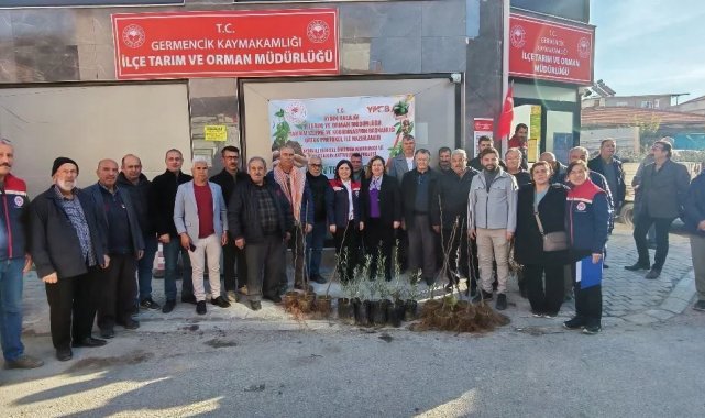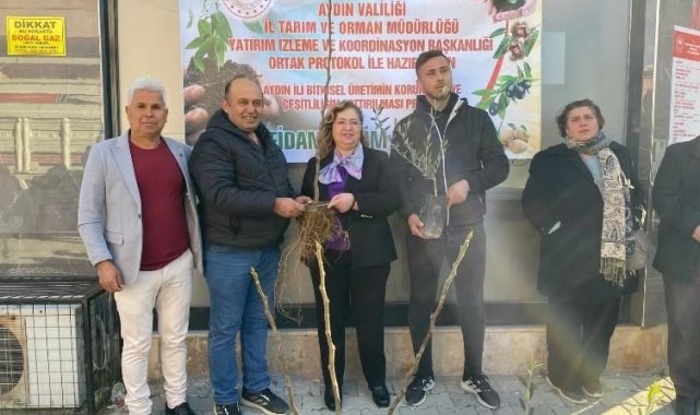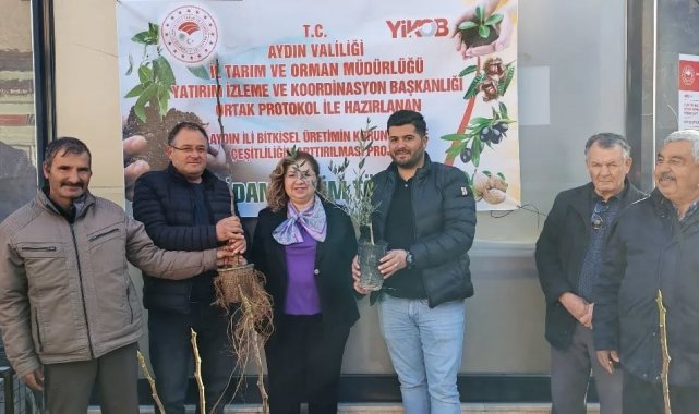Aydın İl Tarım ve Orman Müdürlüğü ile YİKOB iş birliğinde Germencik'te yüzde 50 hibe desteğiyle 4 bin adet sertifikalı incir ve zeytin fidanı üreticilere dağıtıldı.