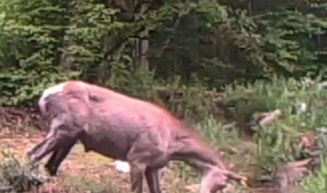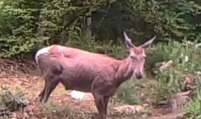 Kocaeli'nin ormanlık bölgelerinde yürütülen yaban hayatını izleme çalışmaları kapsamında, bir geyiğin su birikintisine girdiği anlar fotokapana yansıdı.