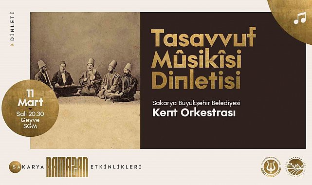 Sakarya Büyükşehir Belediyesi şehrin dört bir yanında düzenlediği kültür-sanat etkinlikleriyle Sakaryalılara Ramazan'ın hazzını, tadını yaşatıyor. 11 ayın sultanı Ramazan'ın ayının manevi değerini yaşatan Büyükşehir bu kez Geyve'de vatandaşları iki güzel etkinlikte buluşturacak. Bu çerçevede 11 Mart Salı günü ilk program saat 20.30'da Sakarya Büyükşehir Belediyesi Kent Orkestrası tarafından Tasavvuf Musikisi Dinletisi sahnelenecek.