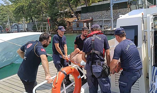 Fethiye ilçesi açıklarında seyreden gezi teknesinde yaralanan vatandaş içen yapılan yardım çağrısı sonrası bölgelerde bulunan Sahil Güvenlik botu vatandaşı kıyıda bekleyen 112 ambulans ekibine teslim etti.