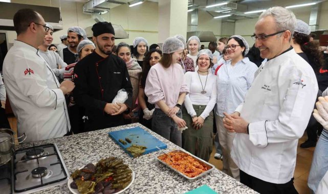 Üniversitenin Gastronomi ve Mutfak Sanatları Bölümü'nden Dr. Öğr. Üyesi Erol Taşkın'ın koordinasyonunda gerçekleşen atölyede, Yöresel Yaprak Sarma, Antep Tarhanası ve Osmanlı Şerbeti uluslararası öğrencilerle birlikte hazırlandı. Doç. Dr. İbrahim Çekiç ve Doç. Dr. Adem Ademoğlu, sürecin her aşamasında öğrencilerle birlikte çalışarak etkinliğin başarılı bir şekilde tamamlanmasına önemli katkılar sundu.