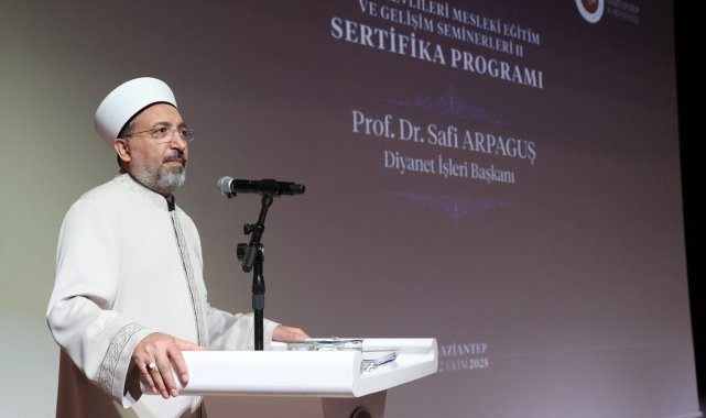 Diyanet İşleri Başkanı Prof. Dr. Safi Arpaguş, "Din hizmeti, sadece bilgiyle değil; aynı zamanda amel, ihlas, samimiyet ve gönül diliyle yürütülmesi gereken bir vazifedir. Bu seminerlerde elde edilen bilgiler hem bireysel gelişimimize hem de topluma sunduğumuz hizmetin kalitesine büyük katkı sağlayacaktır. Bilgi, doğru niyetle birleştiğinde hikmete dönüşür. Aldığınız bu sertifikalar, gayretinizin ve hizmete olan samimi bağlılığınızın bir göstergesidir. Bu tür programları desteklemeye ve teşkilatımızda ilim, amel, ihlas ve samimiyet anlayışını güçlendirmeye devam edeceğiz" dedi.