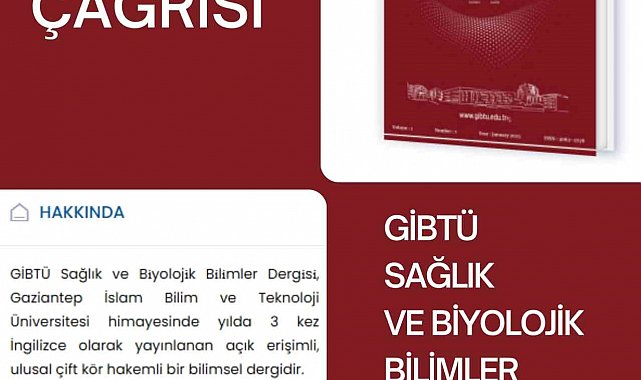 Gaziantep İslam Bilim ve Teknoloji Üniversitesi (GİBTÜ) bünyesinde yayın hayatına başlayan GİBTÜ Sağlık ve Biyolojik Bilimler Dergisi (GISTU Journal of HealthandBiologicalSciences), sağlık, biyolojik ve tıp bilimleri alanlarında nitelikli, özgün araştırmalara ev sahipliği yapmaya devam ediyor. Derginin ilk sayısı yayımlanmış olup, Temmuz 2025 sayısı için makale kabul ve değerlendirme süreci aktif olarak sürdürülmektedir.