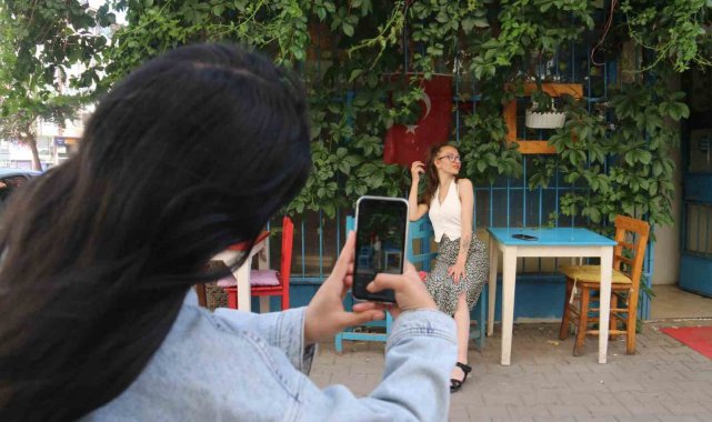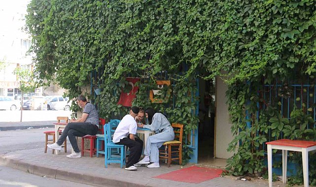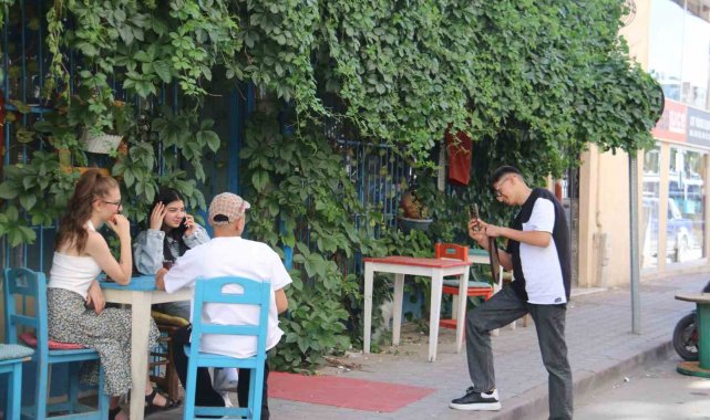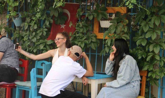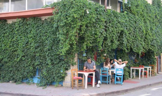 Sivas'ta binaların arasında sarmaşıklarla çevrelenmiş kafe görenlerin ilgisini çekiyor. Kafeye gelen müşteriler fotoğraf çekilerek keyifli vakit geçiriyor.