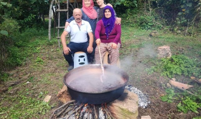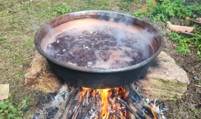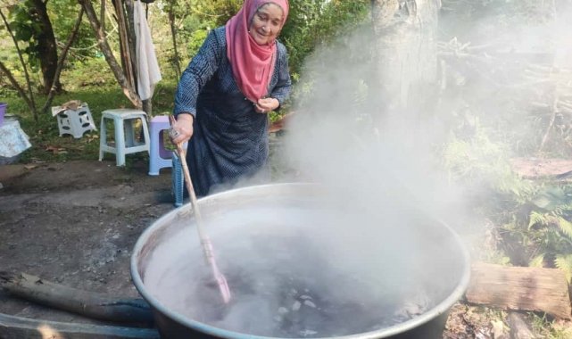 Giresun'da geleneksel kokulu üzüm pekmezi kazanları kaynadı