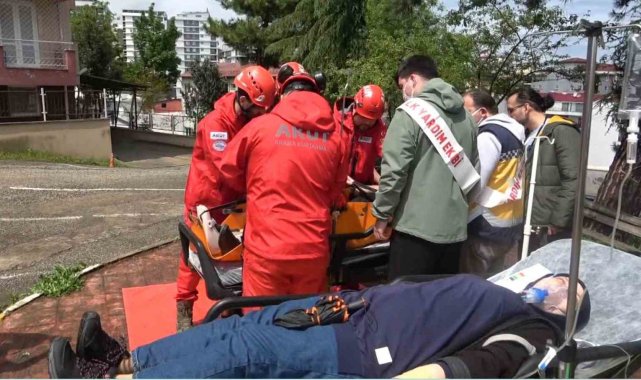 Giresun'da gerçeğini aratmayan tatbikatta senaryo gereği depremde zarar gören hastanede yangın çıktı, hastalar camlardan tahliye edildi.