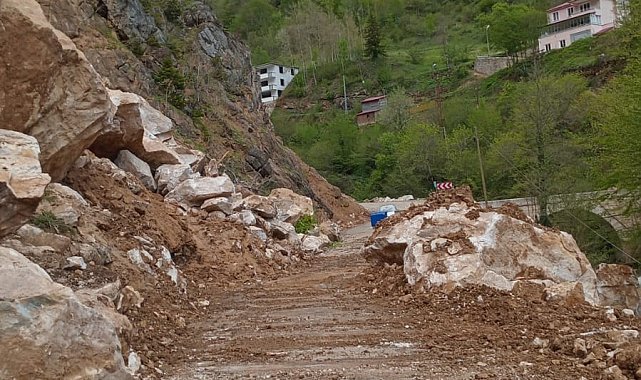 Giresun'da heyelan nedeniyle kapanan yol kontrollü olarak ulaşıma açıldı