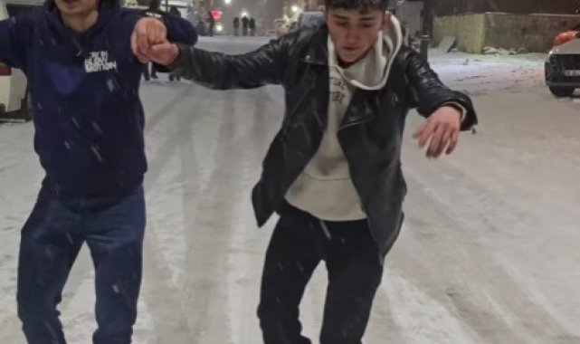 Kulakkaya Yaylasında büyüklü küçüklü vatandaşlar kayarak eğlenirken, gençler kar üstünde horon teptiler.