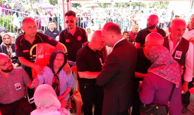 Anne Ayşe Çolak Erdoğan'ın sağlık ekiplerinin nezaretinde güçlükle ayakta durduğu cenaze törenine baba Nevzat Erdoğan'ın yanı sıra Giresun Valisi Mehmet Fatih Serdengeçti, AK Parti Giresun Milletvekilleri Ali Temür ve Nazım Elmas, kamu kurum ve kuruluşlarının yetkilileri, askeri erkan, vatandaşlar katıldı.