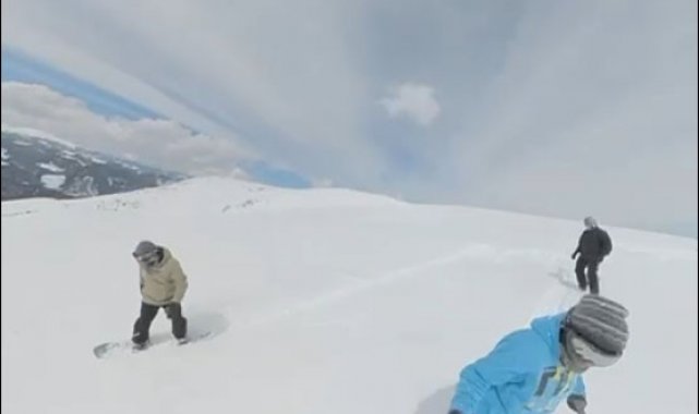 Giresun yaylalarında nisan ayında snowboard keyfi