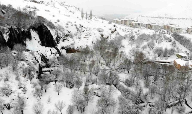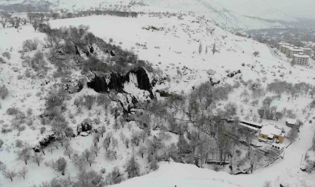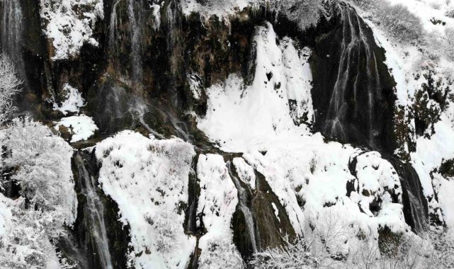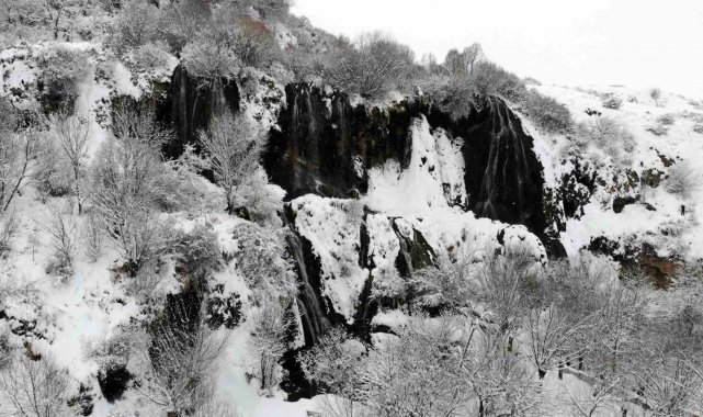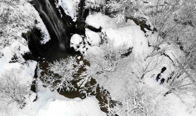 Her mevsim ayrı güzelliğiyle doğaseverlerin ve fotoğraf tutkunlarının ilgisini çeken şelale, yoğun kar yağışının ardından adeta beyaz gelinliğini giydi. Ortaya çıkan görsel şölen, ziyaretçilerin de ilgisini çekti.