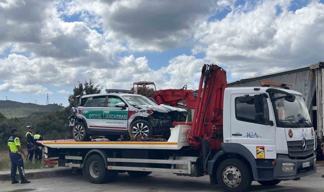 Gişelerde kontrolden çıkan tır jandarma aracına çarptı: 5 yaralı