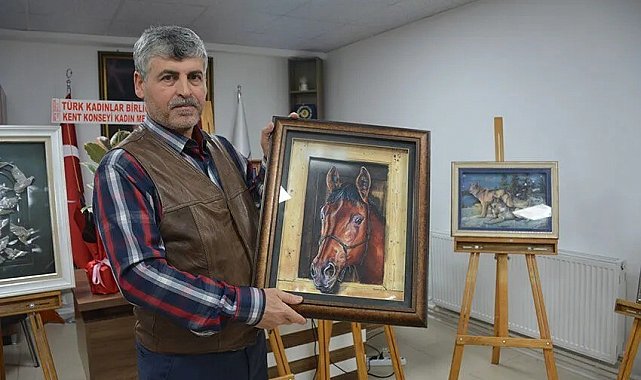 Bilecik'te gittiği sergiden etkilenerek resim yapmaya başlayan Fikret Öztürk, 'Kabartma Rölyef Sergisi' adlı resim sergisini açtı.