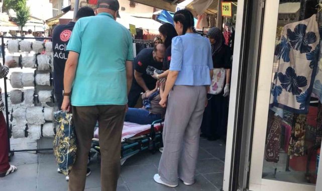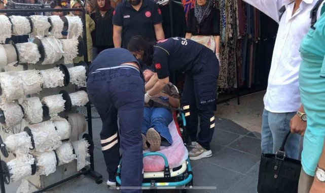 Giyim mağazası önünde aniden bayıldı, hastaneye kaldırıldı