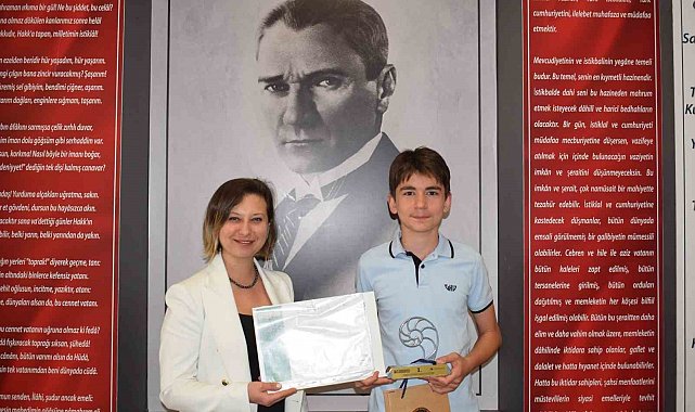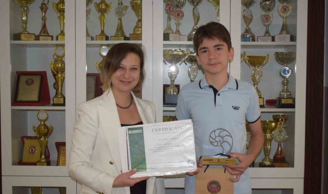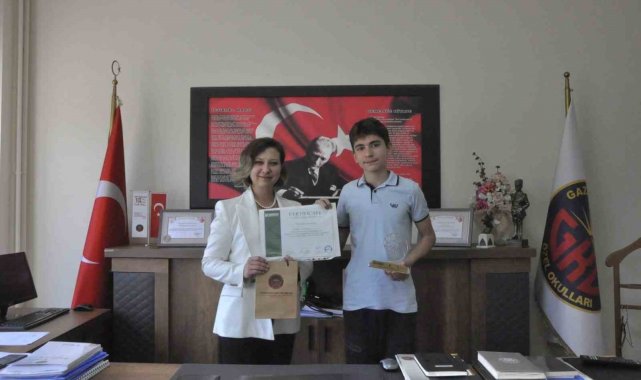 Yarışmada olimpiyat şampiyonluğunu göğüsleyen Faruk Çalışkan'a ödülünü GKV Özel Ortaokul Müdürü Seçil Güldemet takdim edip öğrenciyi kutlayarak başarılarının devamını diledi.