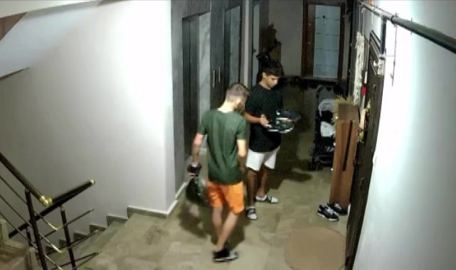 Adana'da bir apartmana hırsızlık için giren şahıslar, göbek atarak ayakkabı çaldı, o anlar güvenlik kamerasına yansıdı.